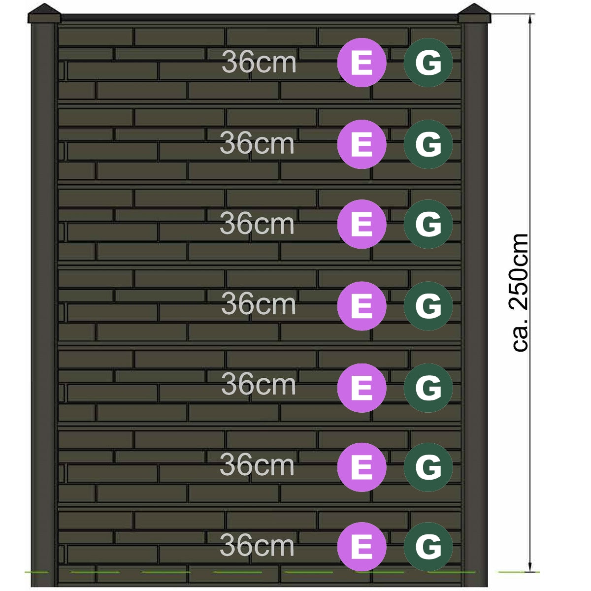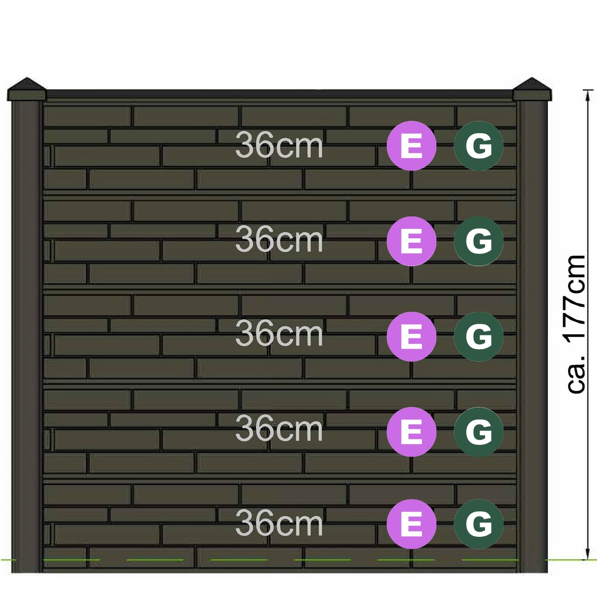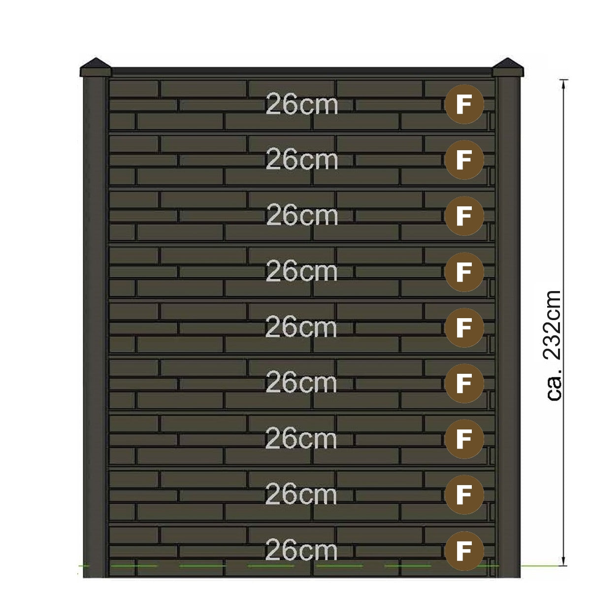 Depending on the length of slotted fence post chosen you can Tailor your garden fence to suit you. We offer different size gravel and decorative boards which can be placed ontop of eachother to from the entire partition.
